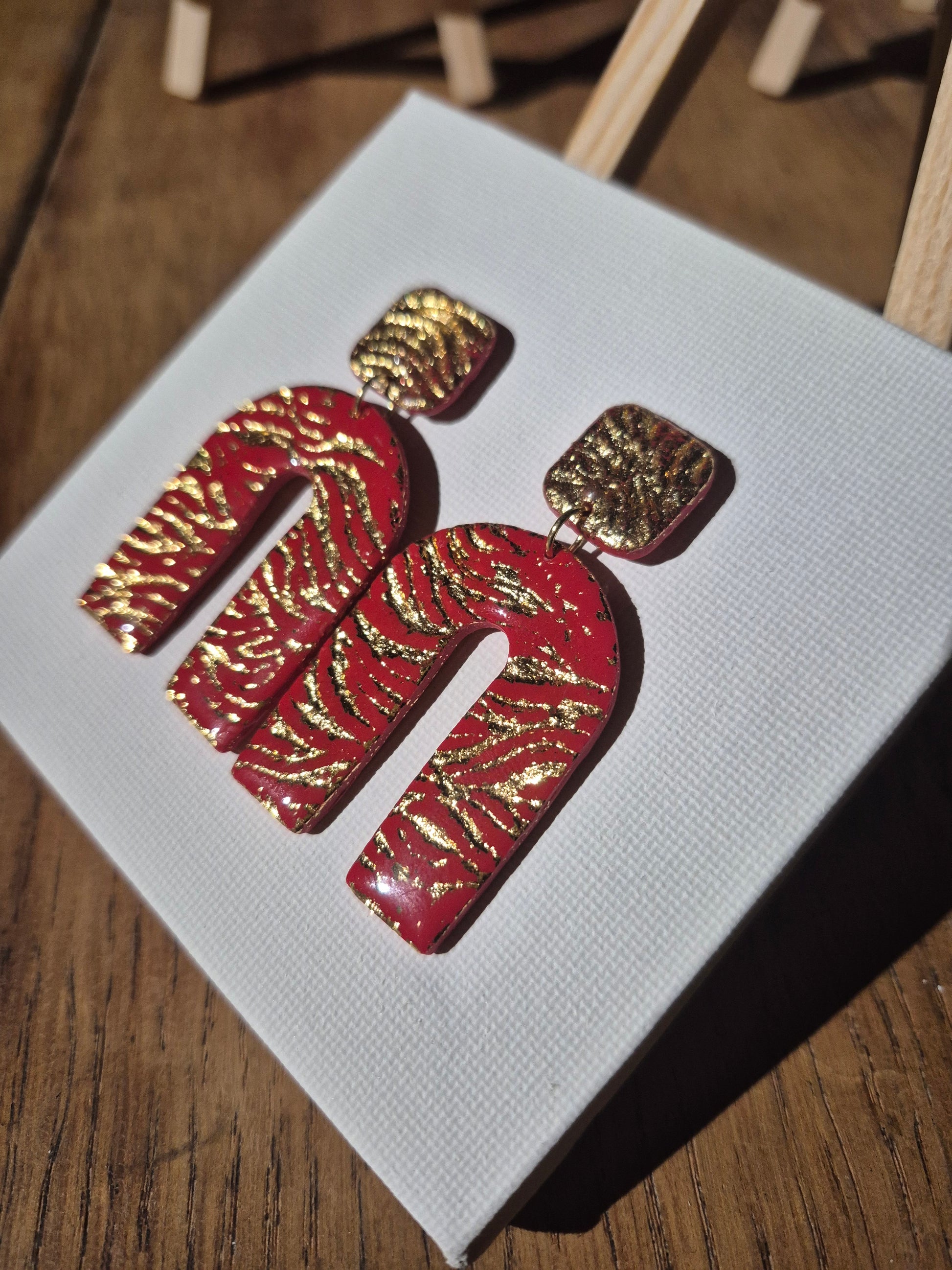 Le rouge profond se marie à merveille avec l'or, et les accents bleu paon apportent une touche de couleur vraiment unique. Elles ont ce côté festif parfait pour les fêtes de fin d'année, mais le bronze leur donne une élégance qui les rend appropriées pour bien d'autres occasions. Elles sont suffisamment audacieuses pour se faire remarquer, sans être trop voyantes. Je les vois déjà scintiller sous les lumières de Noël, ajoutant une touche de glamour à n'importe quelle tenue. C'est le genre de bijou qui fait vraiment la différence et qui apporte une touche de joie.